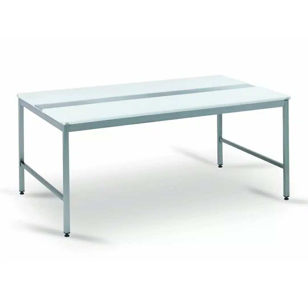 Table de découpe, avec alaise centrale inox, piétiment soudé, avec conception robuste pouvant recevoir quotidiennement des carcasses jusqu’à 200 kg.