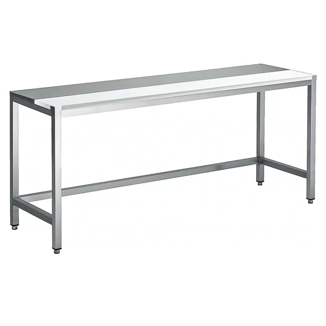 Piétement en tube de 40×40 mm avec entretoises et traverse basse à l’arrière (H-200 mm) sur vérins réglables inox anti-dérapant