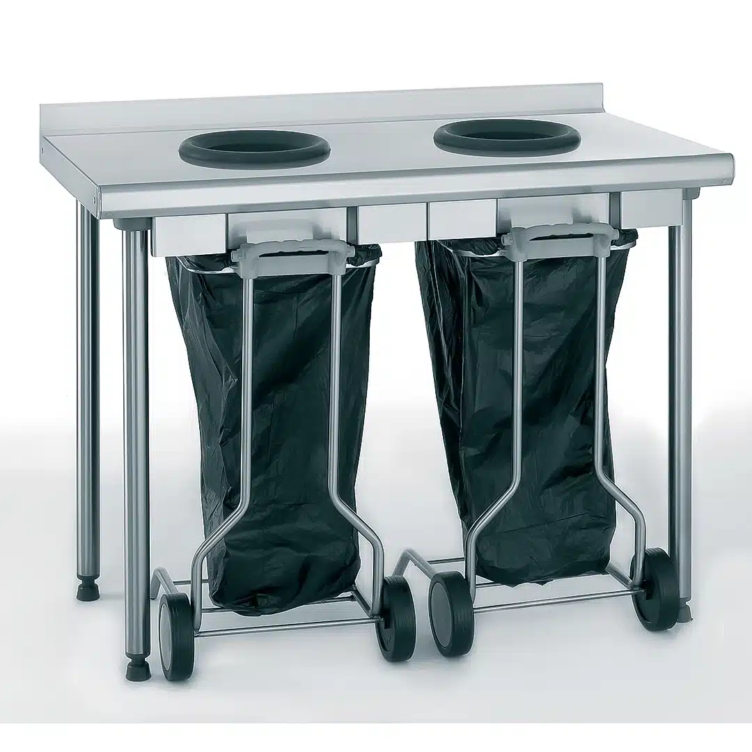 Tables livrées avec porte-sacs hauteur 800 mm sans couvercle, avec guidage.