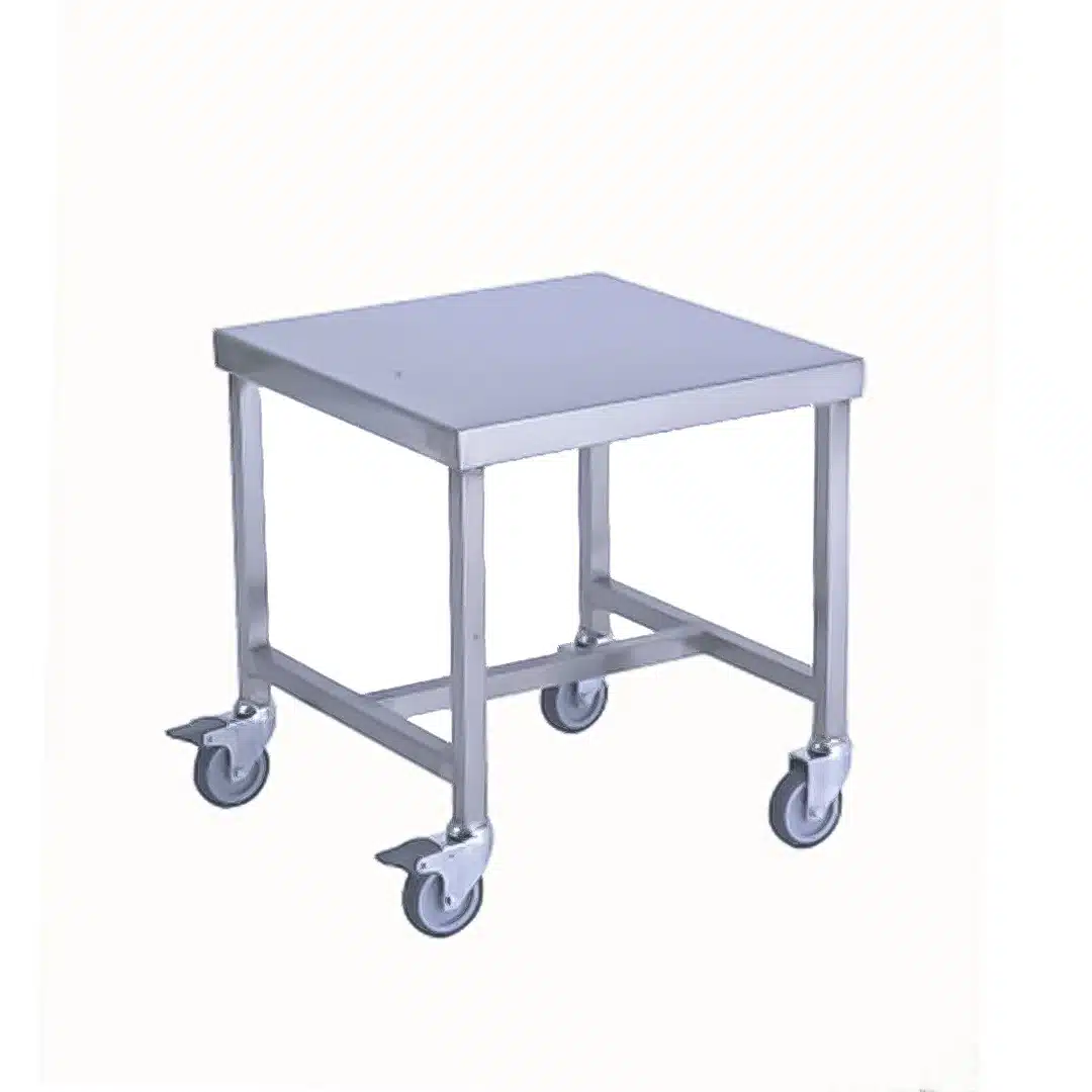 Table de travail avec renfort en H INOX AISI 430 L 450 x P 450 x H 480 mm avec 4 roues