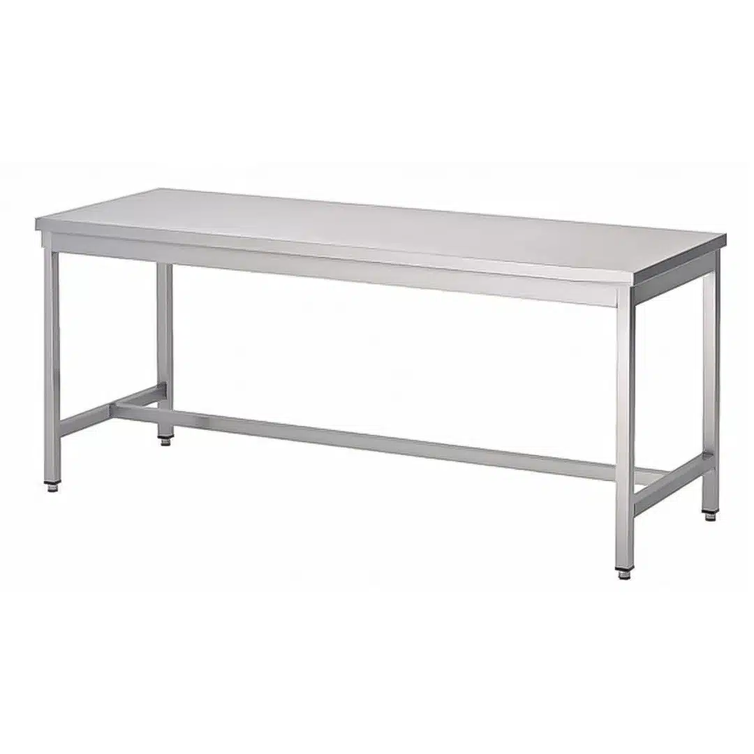 Table de travail inox AISI 304 sans sous-tablette, renfort au milieu.