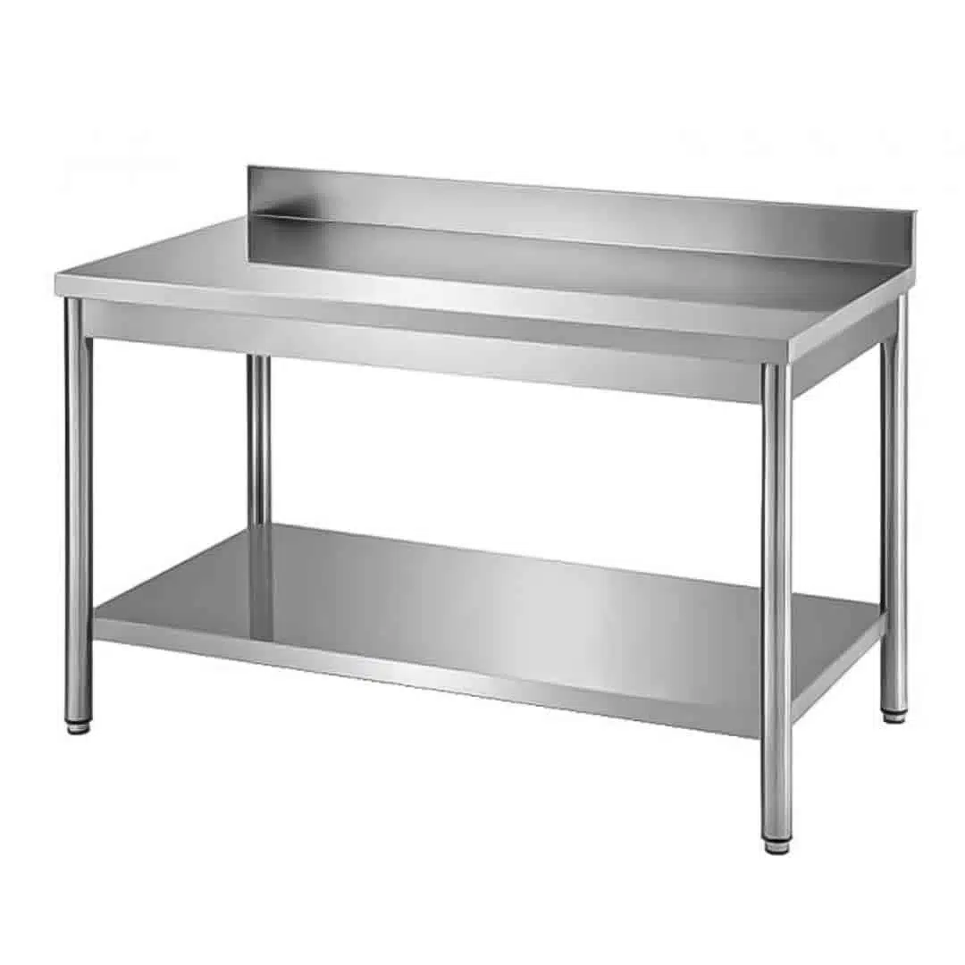 Table démontable bords droits pieds ronds inox AISI 304 adossée+étagère P 600 mm