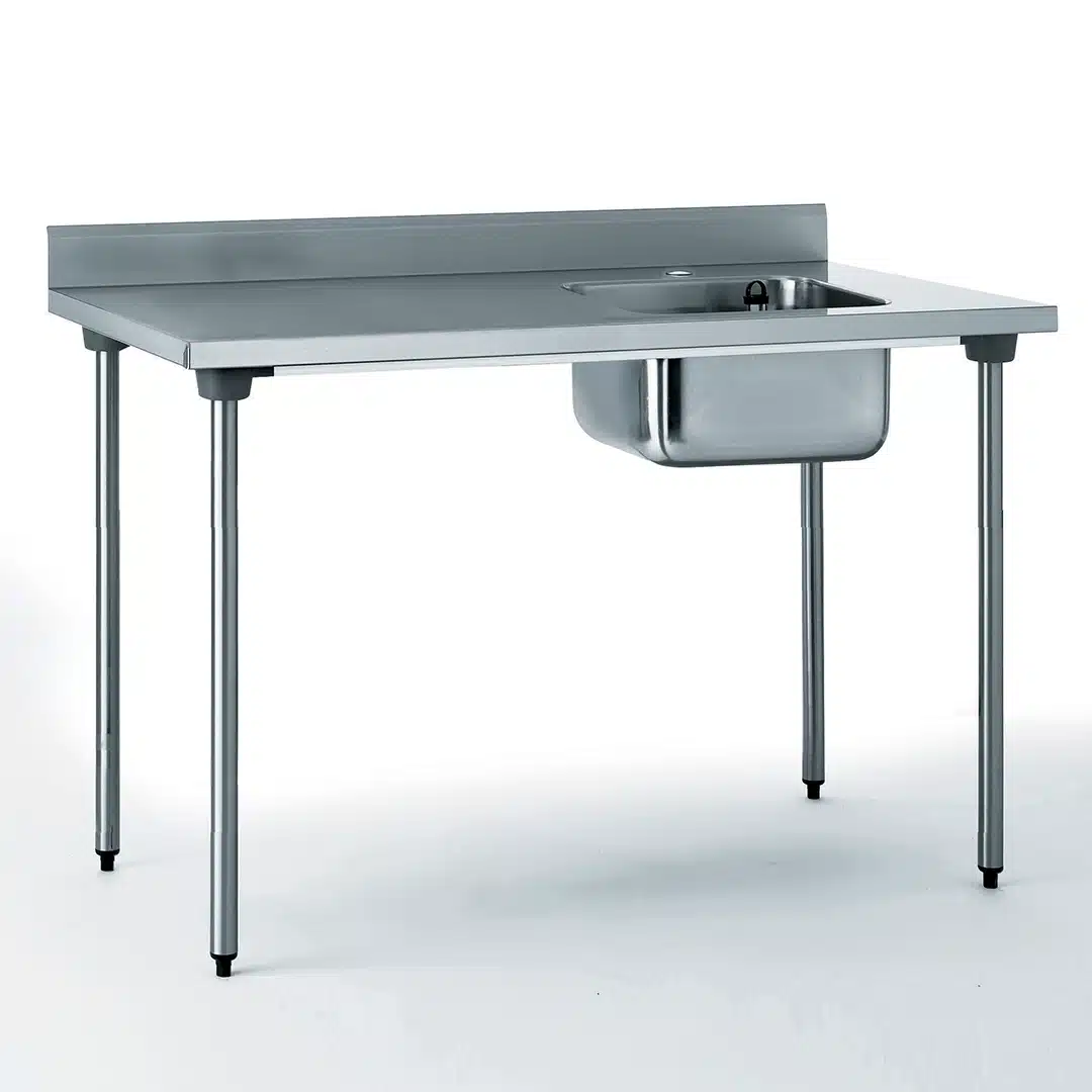 Table du chef sans robinet à dosseret, avec bac à droite, structure réalisée entièrement en tôle d’acier inoxydable, parfaite pour une utilisation en milieu professionnel.