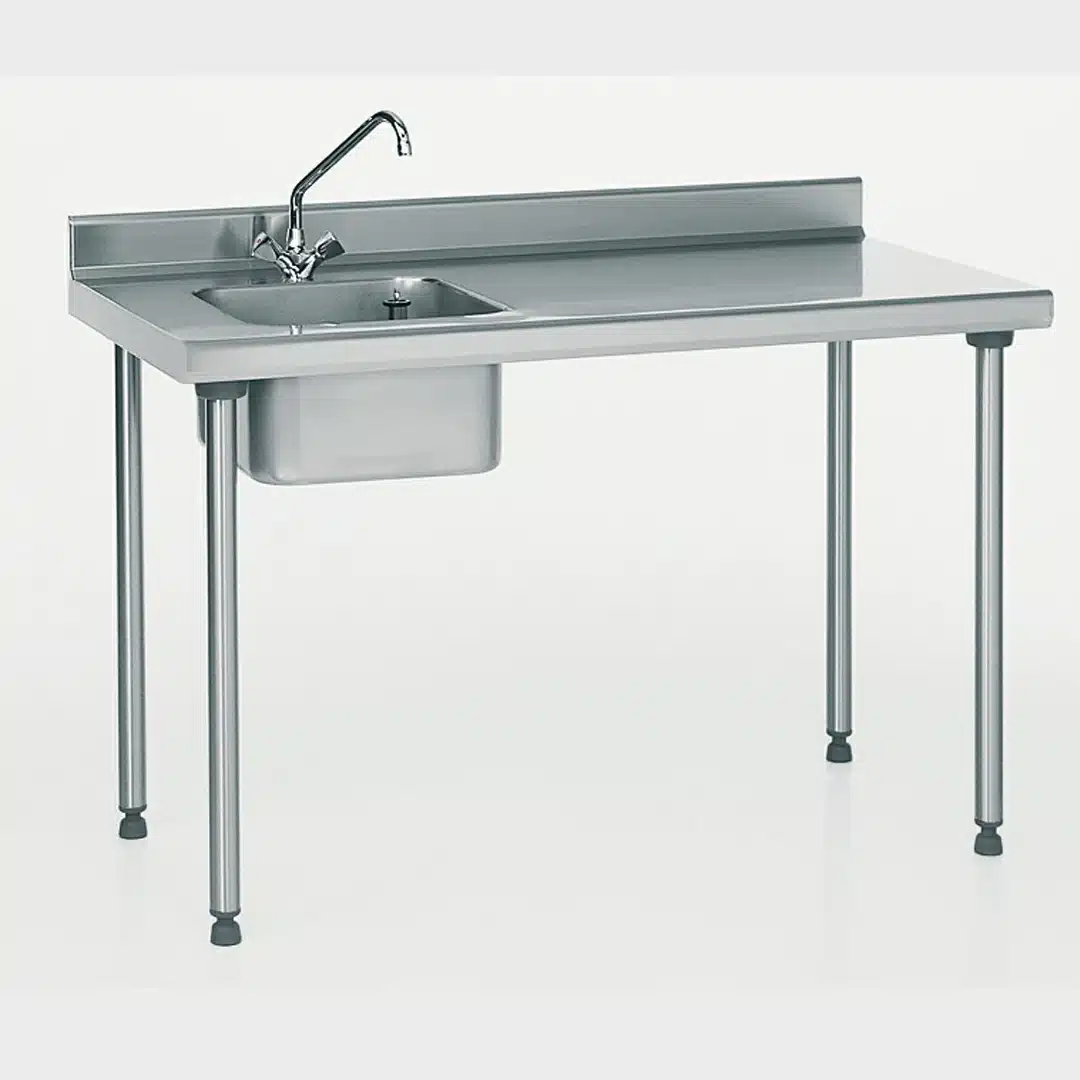 Table du chef TS 15N soudée avec robinet, à dosseret, bac à gauche