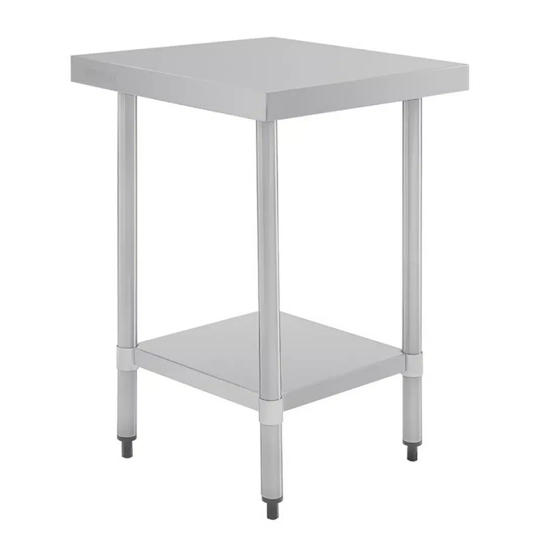 Table en acier inoxydable sans rebord avec étagère profondeur 700 mm