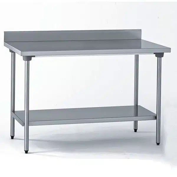 Table inox adossée, avec étagère, fabrication sur mesure.
