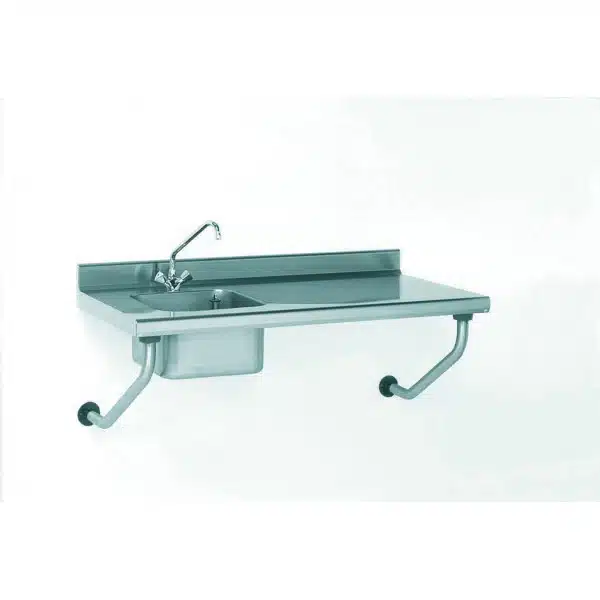Table inox suspendue sur-mesure à dosseret avec robinet largeur 700 mm bac à gauche