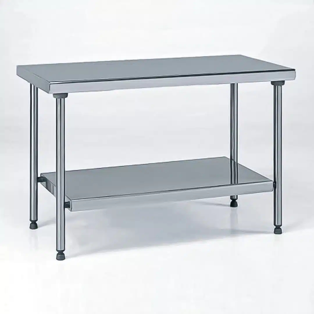 Table inox TS 15N démontable centrale + étagère sur mesure pieds ronds largeur 600 mm