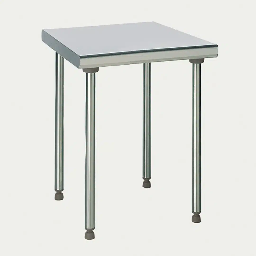 Table en acier inoxydable, hauteur 900 mm, réglable jusqu’à 930 mm (hauteur 850 mm sur demande).