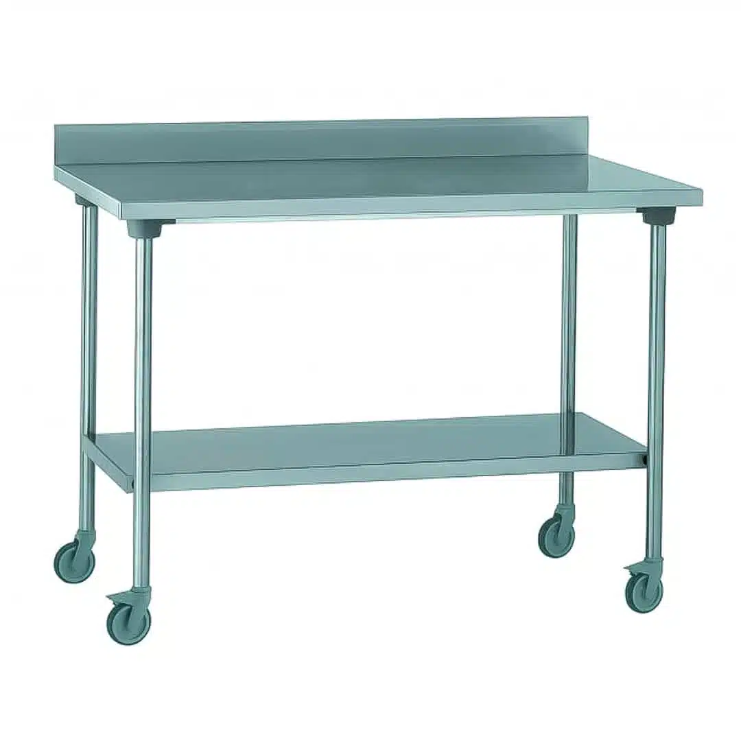 Table inox TS 15N démontable sur roues à dosseret + étagère pieds ronds largeur 800 mm