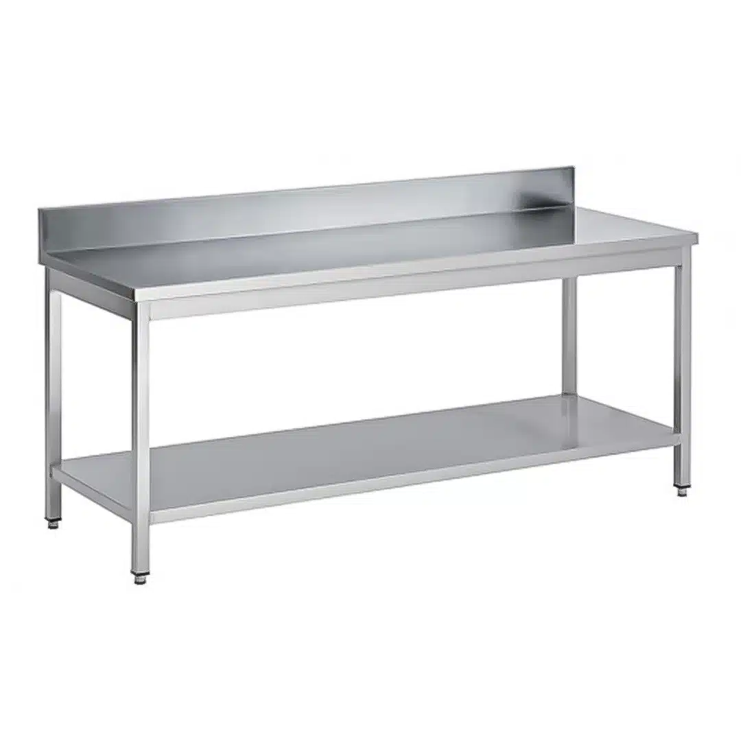Table soudée bords droits, adossée+étagère, P 700 mm