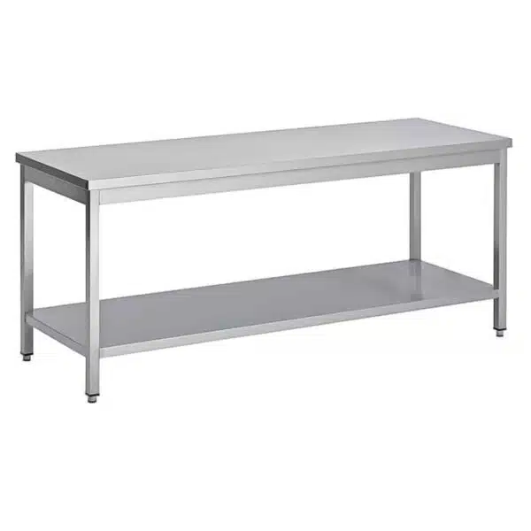 Table soudée bords droits, centrale+ étagère , P 700 mm