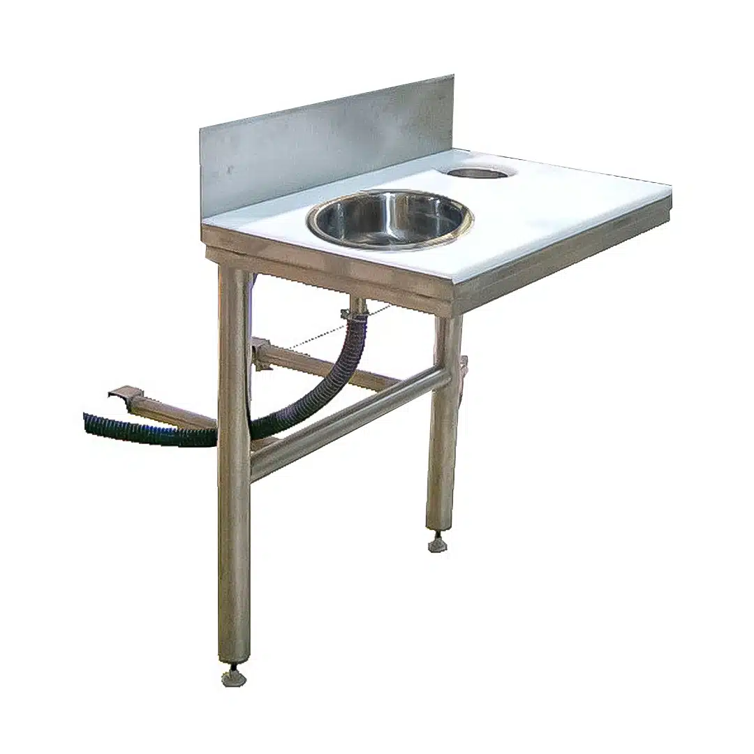 Tablette de travail avec TVO et bac de rinçage, en inox AISI 304