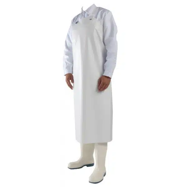 Tablier plongeur, vinyle, blanc, avec du tissu enduit deux faces, résistant aux produits d’entretien courants.