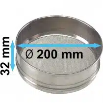 Tamis d’analyse en acier inox Ø 200 x H 32 mm maille 3.15 mm.