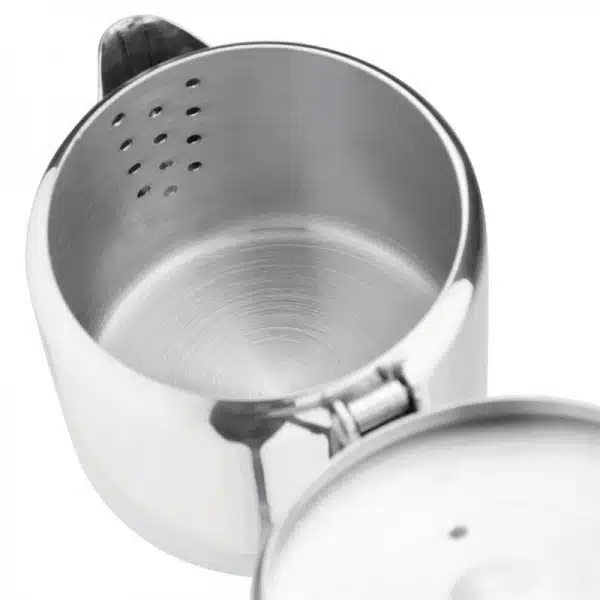 Apportez une touche de sophistication à votre service de boissons chaudes avec cette théière en acier inoxydable. Disponible en plusieurs capacités (0,29 L, 0,41 L, 0,85 L, et 1,83 L), elle s’adapte parfaitement à tous vos besoins.
