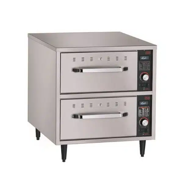 Tiroir chauffant étroit sur pieds, conçu pour bien maintenir vos aliments au chaud.