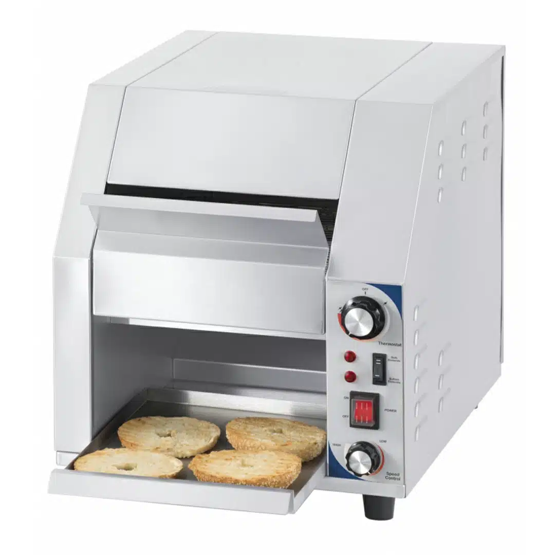 Toasteur convoyeur, idéalement conçu pour toaster vos tranches de pains, petits pains, gauffres… en grande quantité.