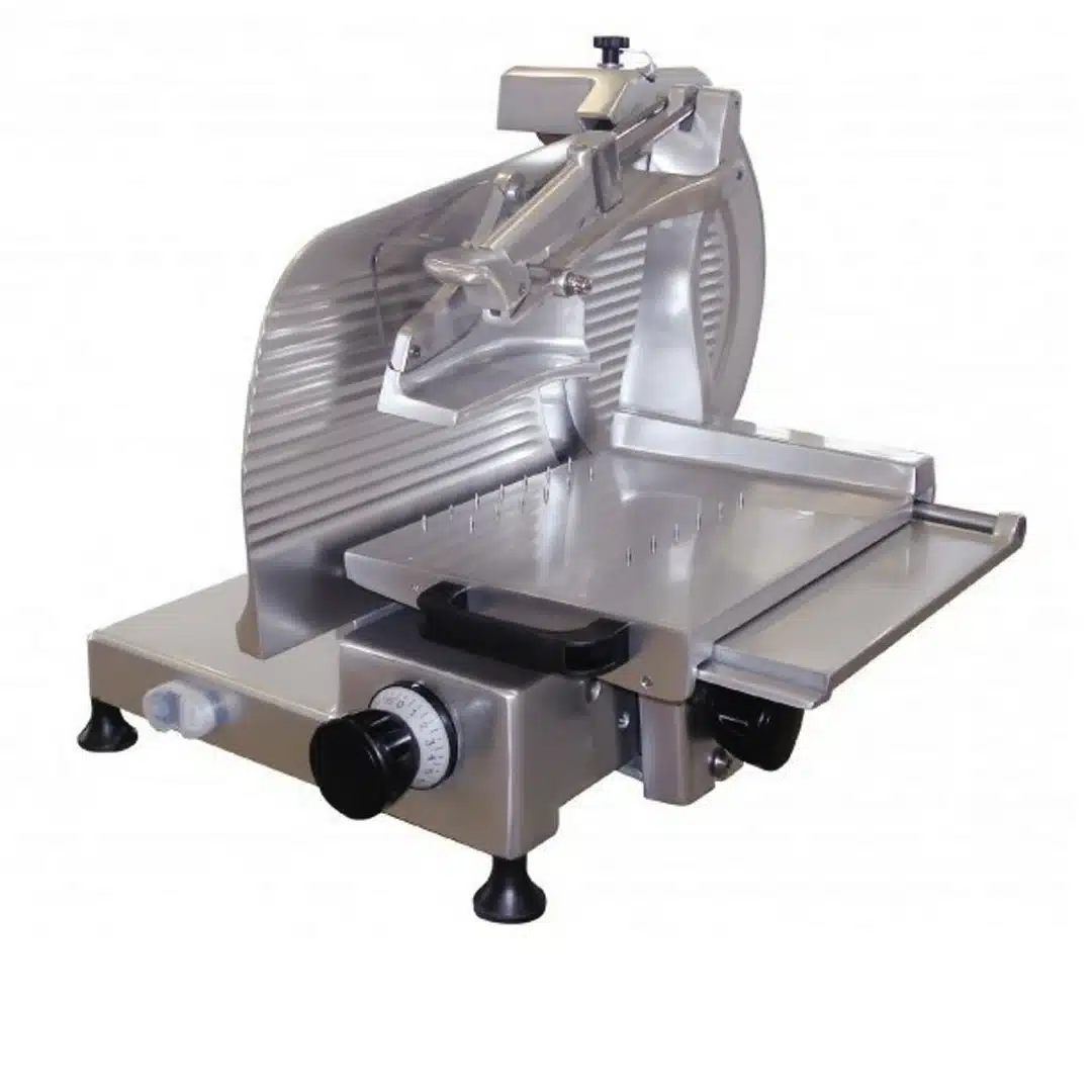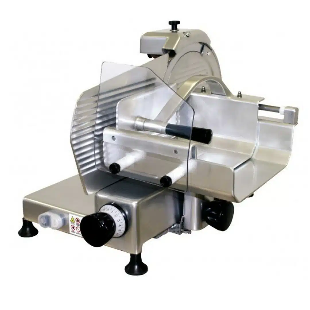 Découvrez le trancheur à courroie modèle vertical Ø 370 mm, conçu spécialement pour les professionnels de la cuisine (CHR) qui recherchent efficacité et fiabilité. Avec sa construction en aluminium anodisé et son moteur ventilé puissant, cet appareil garantit des coupes précises et rapides, tout en assurant une grande facilité d’entretien. Que vous soyez restaurateur, traiteur ou gérant de charcuterie, ce trancheur répondra à tous vos besoins en matière de tranchage.