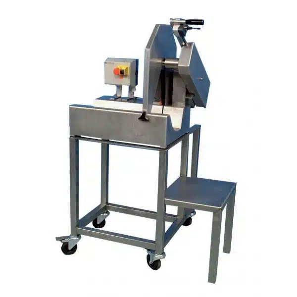 Tronçonneuse à poisson avec injection d’eau automatique, un matériel conçu pour couper uniquement du poisson frais (entier, filets ou salé), pas de poisson surgelé, idéale pour les poissonniers