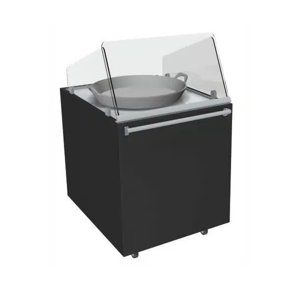 Meuble 1 poêlon, conçu pour la vente de plats type paella ou choucroute.