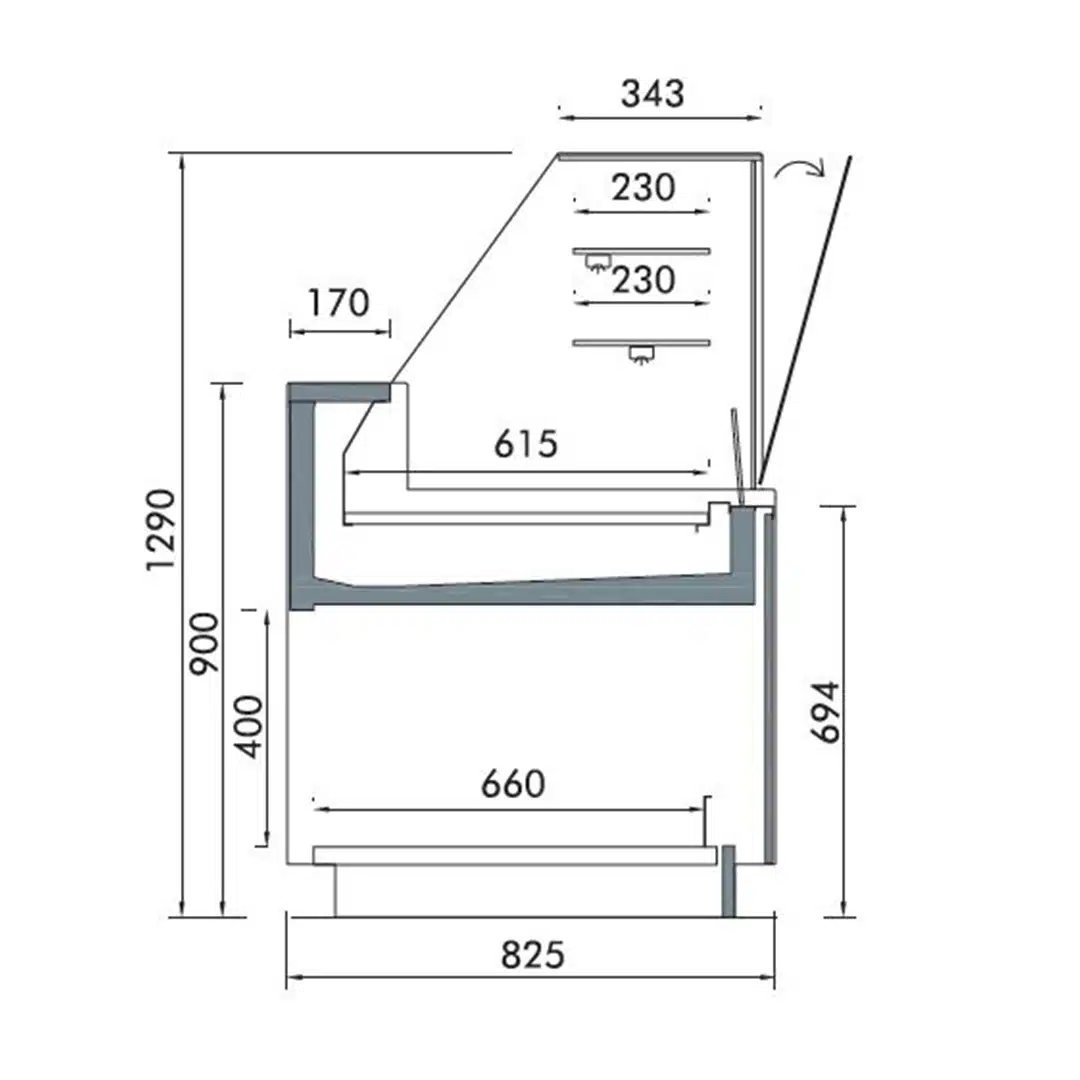 Vitrine comptoir gamme 2 étagères BELLINI, parfaite pour les boulangeries, pâtisseries, traiteurs et commerces alimentaires, allie design raffiné et performance de réfrigération.