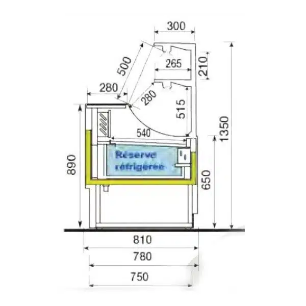 Vitrine comptoir, froid positif, idéale pour le conditionnement et l’exposition de vos produits alimentaires.