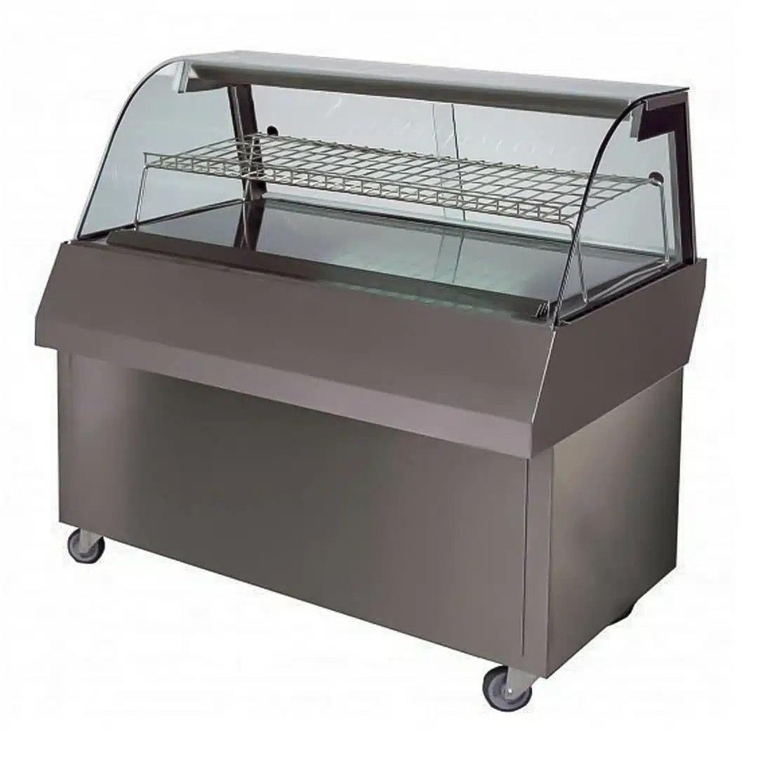 Vitrine de présentation en inox modèle MAP COLD 1410 sur meuble à roulette