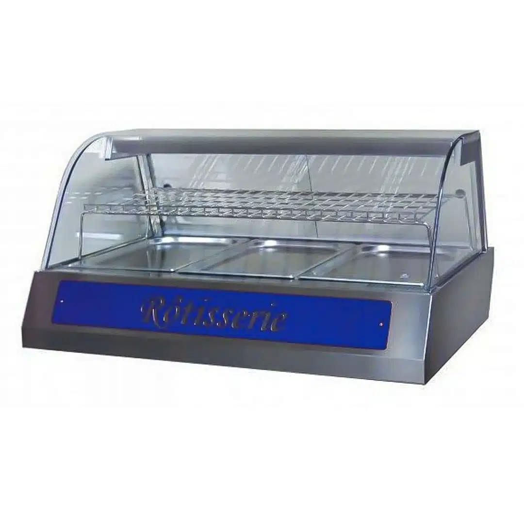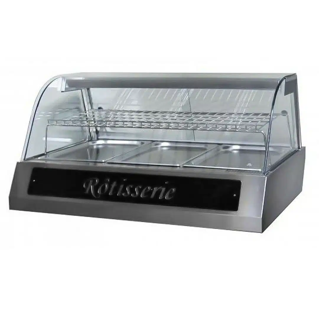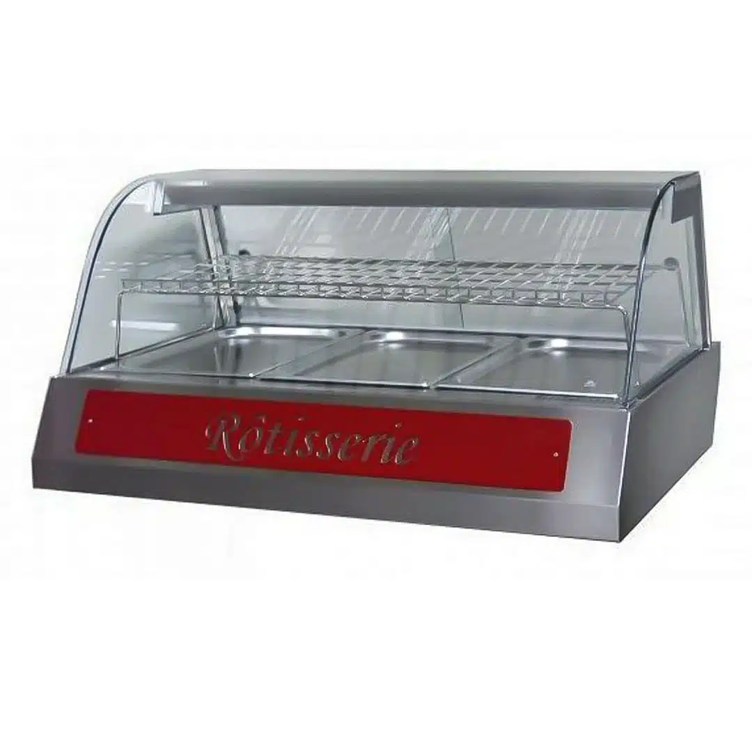 Cette vitrine est idéale pour les restaurants qui veulent montrer leurs produits tout en gardant leur fraîcheur et leur qualité. Elle convient particulièrement aux rôtisseries, boulangeries et autres magasins alimentaires.