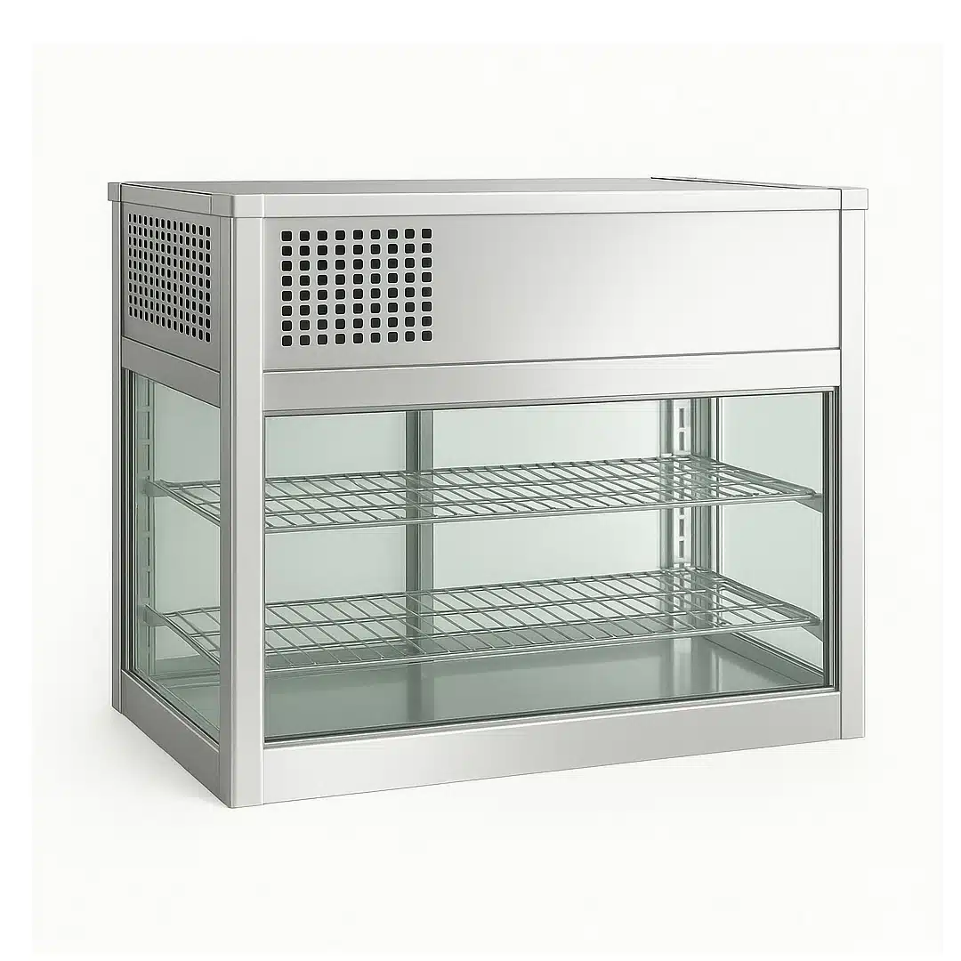 Découvrez la vitrine panoramique 100 L à poser sur comptoir. Froid positif ventilé, éclairage LED vertical et structure en inox AISI 304. Parfaite pour les professionnels de la restauration !