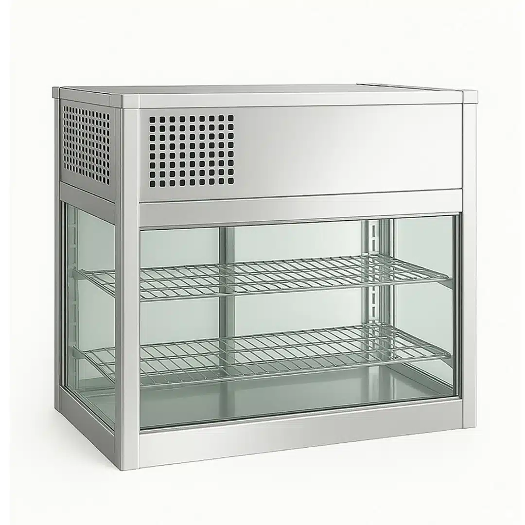 Cette vitrine panoramique à poser sur comptoir est conçue pour les professionnels de la restauration qui souhaitent mettre en valeur leurs produits tout en maintenant une température optimale.
