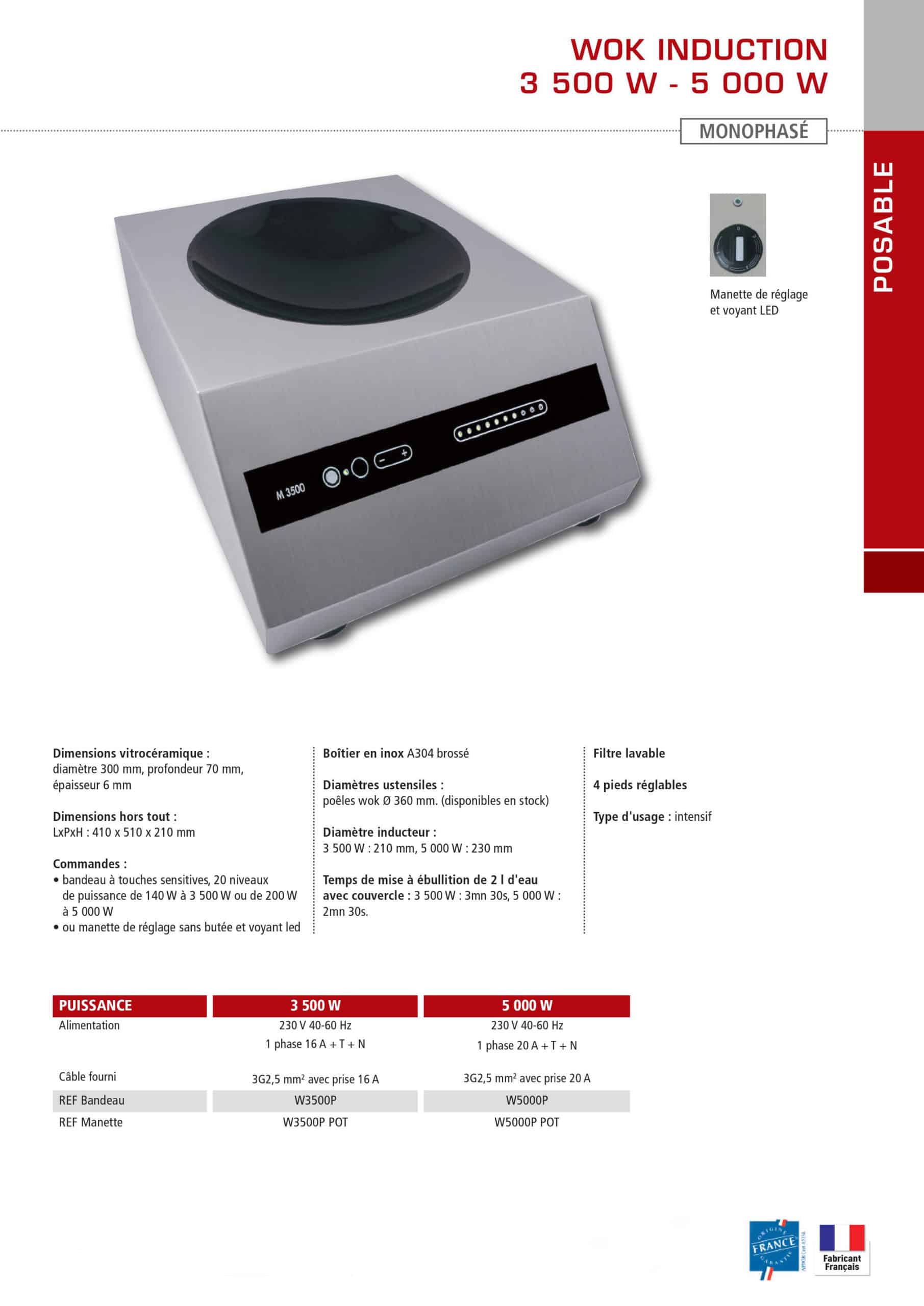 Wok induction monophasé, puissance 3500 W