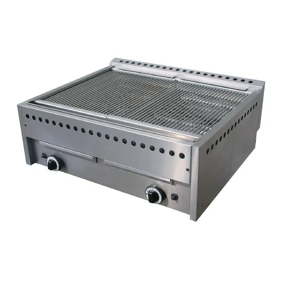 Découvrez notre grill à gaz 18000 W, conçu pour les professionnels de la restauration (CHR). Ce grill confère à la viande un délicieux goût de cuisson au feu de bois grâce à son système charcoal avec pierres réfractaires. Idéal pour une utilisation intensive, il garantit une cuisson homogène et savoureuse.