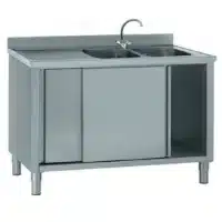 Meuble en acier inoxydable porte coulissante avec dosseret largeur 700 mm